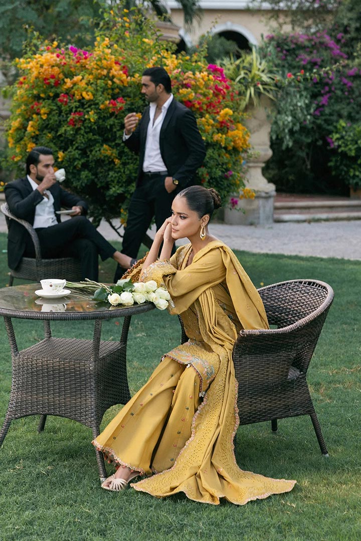 Florigold from the Elaf Luxury Winter ’25 collection is a graceful three-piece unstitched ensemble designed for winter charm and stylish comfort. Crafted in premium karandi fabric, the shirt features fine embroidery across the front and back, enhanced by delicate finishing touches. The set includes an embroidered karandi shawl for soft elegance, paired with a dyed karandi trouser for a complete look. Ideal for formal evenings and special occasions, Florigold blends luxurious texture with thoughtful design to deliver subtle sophistication.