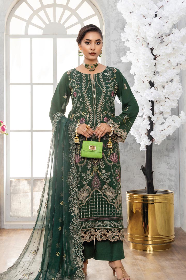 Olive tones enriched with golden embroidery, offering a distinctive and regal appeal.